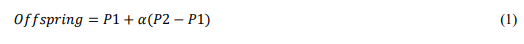 Alpha (πΌ) is a scaling factor that is continuously and arbitrarily selected, and P1 and P2 represent parent 1 and parent 2, respectively. A mutation arises from combining or changing the values of the gene in a parallel or genuine representation for each gene individually, based on the likelihood of the mutation value. The mutation administrator continuously searches and accelerates. It breaks free from around minima, and since it preserves a reasonable degree of population diversity, the optimal arrangement may result from providing an appropriate incentive for this behaviour.
