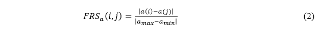 Where a_max in Equation (2) defines the minimum and maximum values provided for the attribute a. 〖FRS〗_a (i,j) defines the properties of symmetric and reflexivity. Let T be the T-norm operator with the fuzzy rough set model for information disorder, which can be given as lower and upper approximations using FRS along with decision attribute