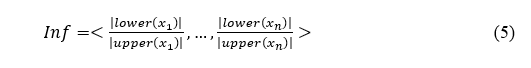 Where f_i in Equation (1) denotes the i^th element of the set and μ(f_i )ϵ[0,1] is its membership degree. Fuzzy logic operators like t-norm are a fn(T):[0,1]^2 implies [0,1] that monotonic, commutative and associative properties that satisfy the fuzzy boundaries of information min〖T(a,b)〗=min{a,b}. The crisp indiscernibility relationship of RS can be transformed into a fuzzy indiscernibility relation, which is one of the possibilities that are offered. This method is commonly referred to as Fuzzy Rough Sets (FRS). Any fuzzy relation typically indicates the degree to which two items are indistinguishable from one another, and a fuzzy indiscernibility correlation is the relationship that is employed. The FRS relation between a and b is the fuzzy tolerance relation.