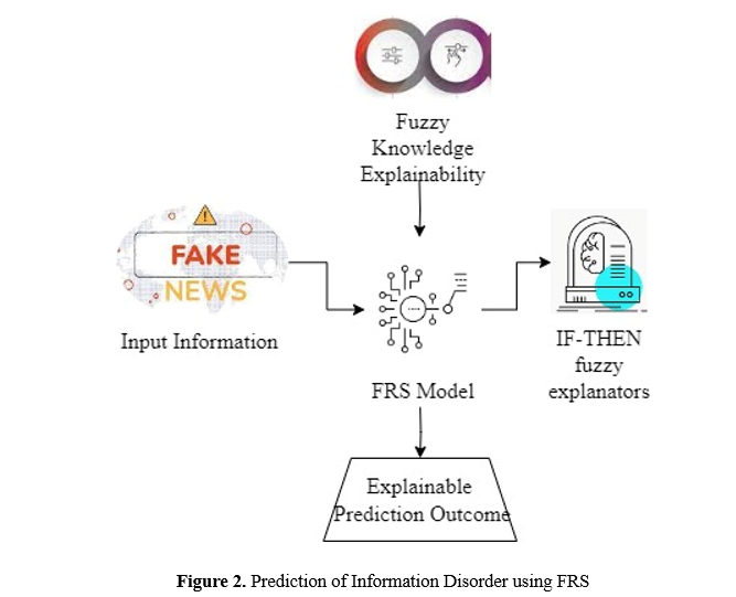 The proposed research presents a novel approach to predicting. In summary, this study has provided evidence for the effectiveness of fuzzy rough sets as a method for examining information disorder, specifically in the identification of misinformation and false news. The methodology's integration of fuzzy logic and rough set theory enhances decision-making capabilities, thereby improving the effectiveness of educational systems in recommending groups within e-learning environments. The integration of explainable prediction methods provides users with additional authority to form well-informed assessments, thereby promoting openness and confidence in predictive models. Subsequent investigations in this field will be indispensable in formulating resilient approaches to counter misinformation and advance a more knowledgeable digital environment. The research improves the accuracy and interpretability of models by incorporating fuzzy raw sets into predictive modelling techniques. This enables more dependable identification of misinformation. Furthermore, the integration of explainable prediction methodologies enables users to exercise informed discernment with respect to the regulation and distribution of information, thereby fostering openness and confidence in predictive models.