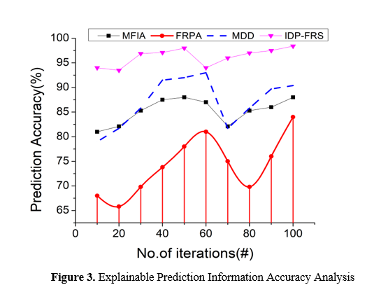 In Figure 3, An enormous quantity of varied information about disorders is gathered in this research study. These data include fake and genuine data, which provides for fuzzy boundary cases reported and analyzed in the FRS domain. A measure of how well predictive algorithms are able to accurately classify occurrences of information disorder, such as fake news and conspiracy ideas, based on the attributes derived from textual data, is referred to as prediction accuracy. In doing so, it offers insights into the general effectiveness of the models in distinguishing between instances of information disorder and cases that do not exhibit those characteristics. There is a correlation between high prediction accuracy and increased interpretability and transparency of predictive models. This is because high prediction accuracy promotes trust in the reliability of model predictions. Users can have faith in and rely on models that have a high prediction accuracy in order to assist them in efficiently identifying and responding to instances of information disorder.
