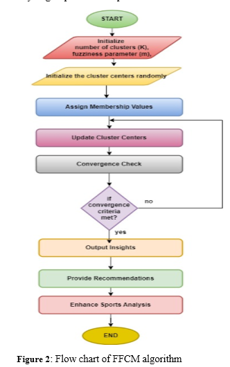 Figure 2 illustrates how the FCM algorithm is incorporated into sports analytics, specifically in analyzing and forecasting female athlete behavior inside the POFFA framework. It highlights the need to obtain practical insights to strengthen coaching methods and boost the general success of female athletes in sports with competitive environments.