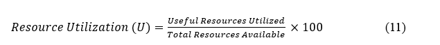 Resource utilization is the efficiency of a system's available resources, energy, and bandwidth to realize its output. High resource utilization means less waste and close to optimum performance. It is shown in Equation (11).