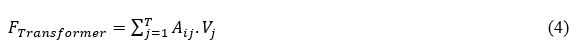 Where, Q,K,V: Query, key, and value matrices. d_k : Dimensionality of the key vector. Output Representation: The weighted sum of values produces the final feature vector (equation (4)):