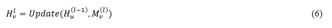 Node Update: Update the node features using aggregated messages as in equation (6):