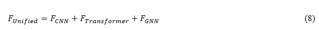 Unified Features Vector: Now that features have been extracted from each data form, accumulate vectors into the unified feature representation, as in equation (8):