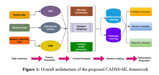 The study proposes a CADSS with meta-learning that will help improve adaptability and precision in intelligent agriculture and autonomous systems. This becomes necessary because of the challenges of heterogeneous data, dynamic environmental conditions, and the need for privacy-preserving solutions in such domains. Advanced technologies in this framework involve the MAML technique for fast task adaptation, CNNs for enabling spatial data processing, and transformer models for temporal data analysis. RL will ensure optimal decision-making, while federated learning will protect against data privacy leaks across nodes. Key benefits include improved prediction accuracy, increased decision reliability, and efficient resource usage, depicted by significant enhancements in experimental results. Applications span precision farming, autonomous navigation, and smart irrigation, making the system versatile in addressing real-world challenges. The framework advances operational efficiency, sustainability, and decision-making in complex, data-driven environments by providing dynamic, context-aware responses (Figure 1).