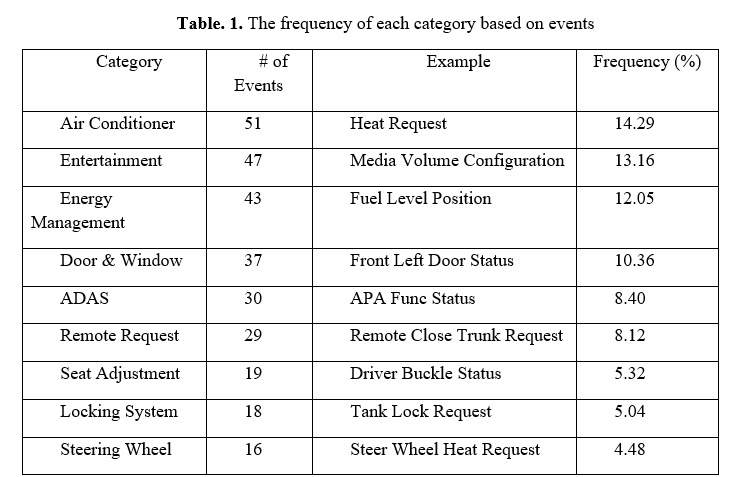 Prospective reasoning for intelligent settings is built upon the Transformers Modeling Training Component. This section aims to create a Transformer design that can capture complex time-dependent relationships and connections. The information set includes different occasion classifications, such as "Heat Request" for air conditioning activities and "Gear Shift Position" for equipment and acceleration measurements. As an illustration, the design may prioritize different kinds of events, such as "Driver Buckle Status" under the Seat Adjustments classification or "APA Func Status" under ADAS, thanks to the Transformer's self-awareness procedure, which helps to provide a more complete picture of how different variables communicate with one another.